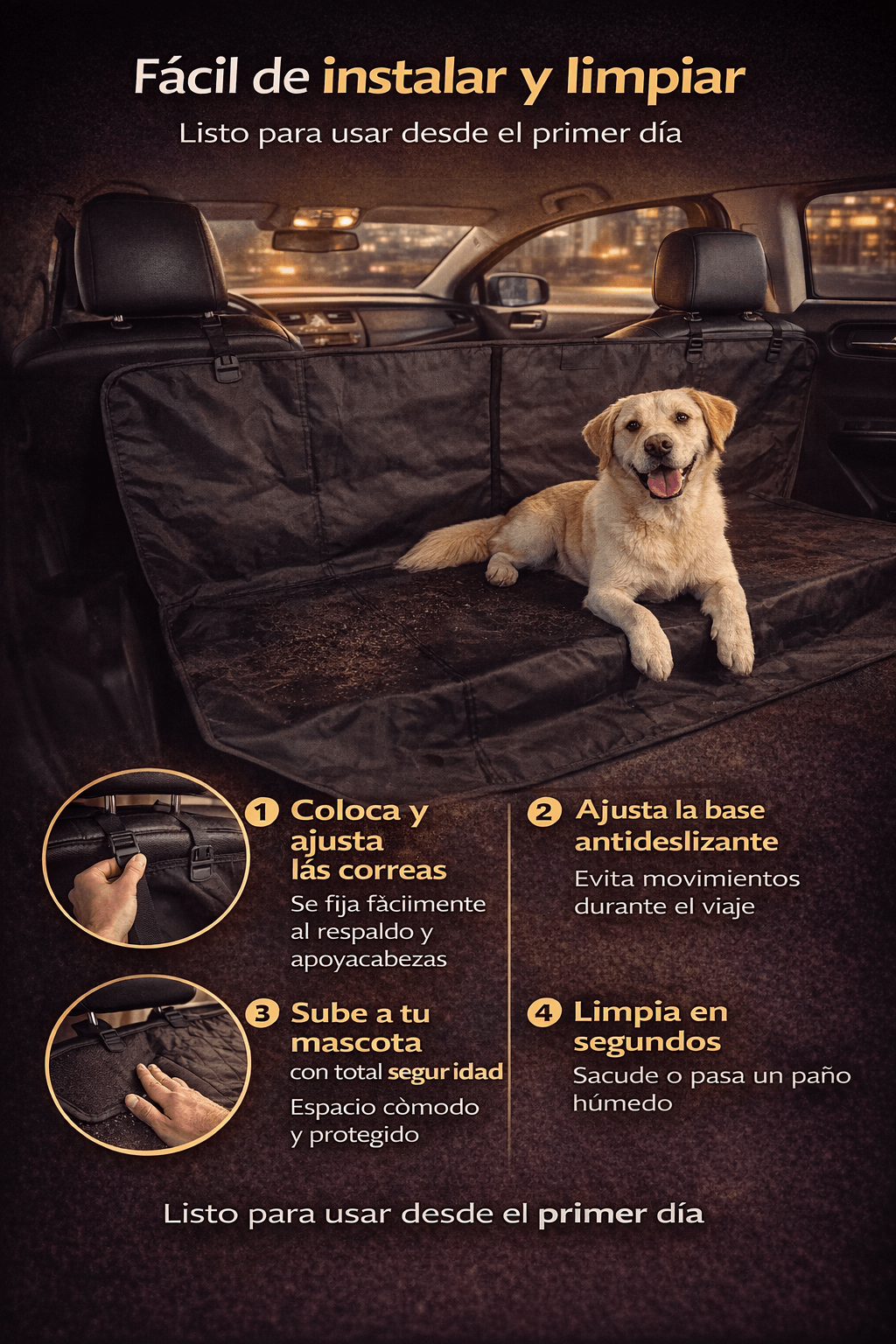 Sí. Está fabricado con material resistente al agua que protege la cojinería contra orina, barro, pelos y derrames.