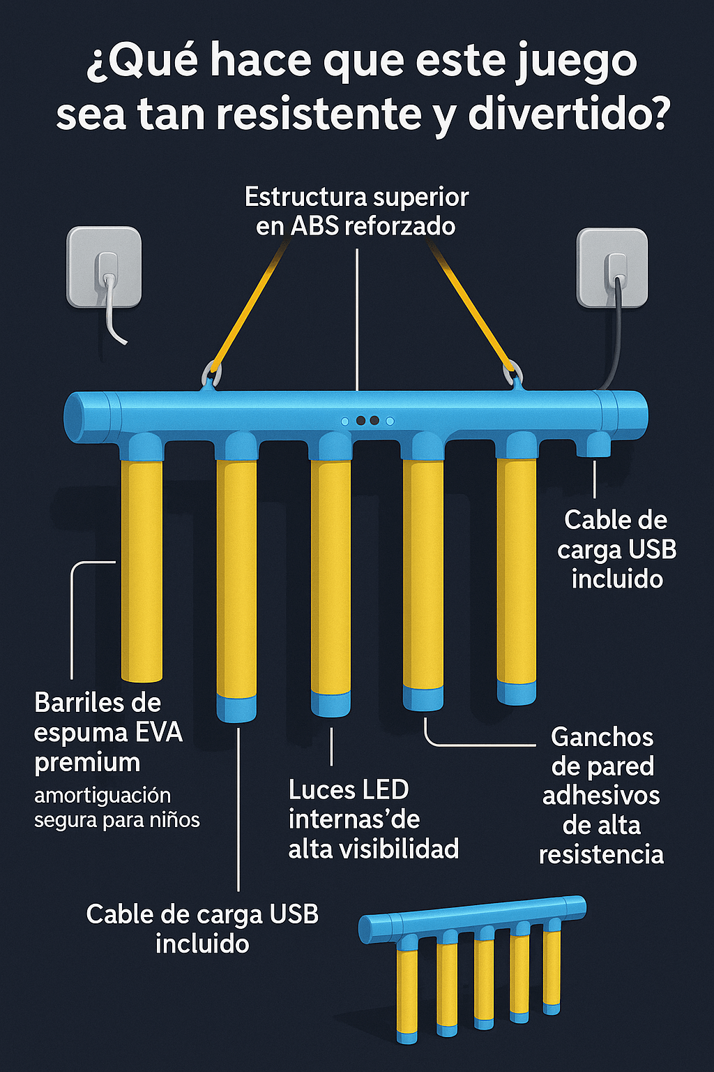 Sí, incluye: barra principal, tubos, ganchos adhesivos, cable USB y cuerda de sujeción.
